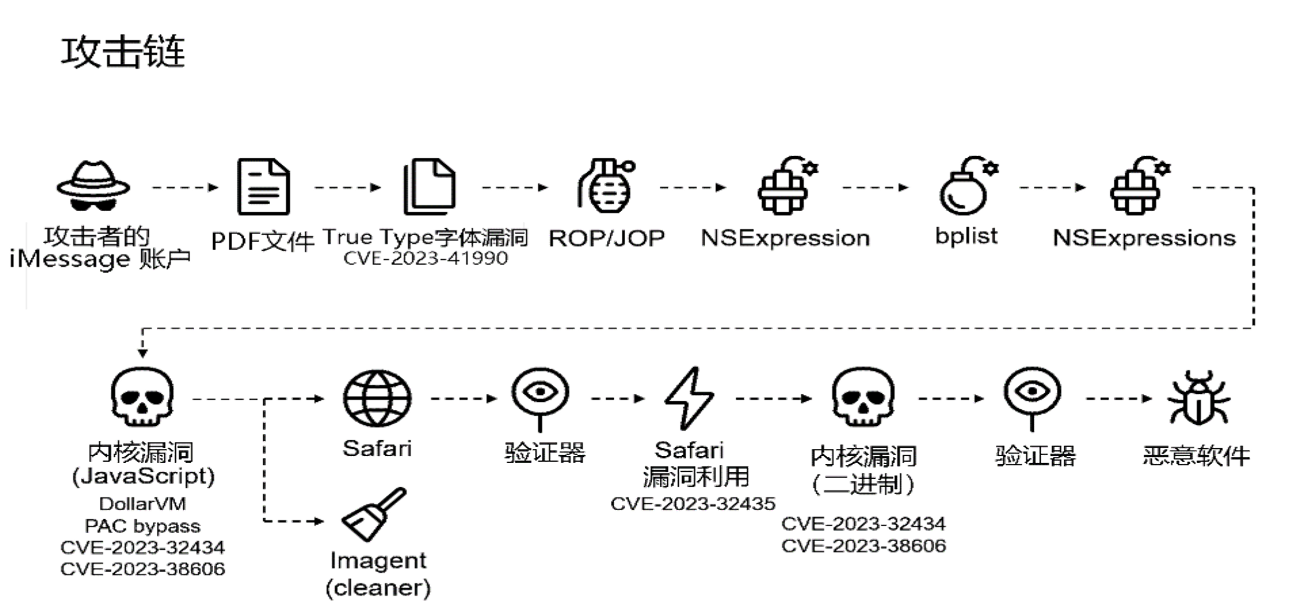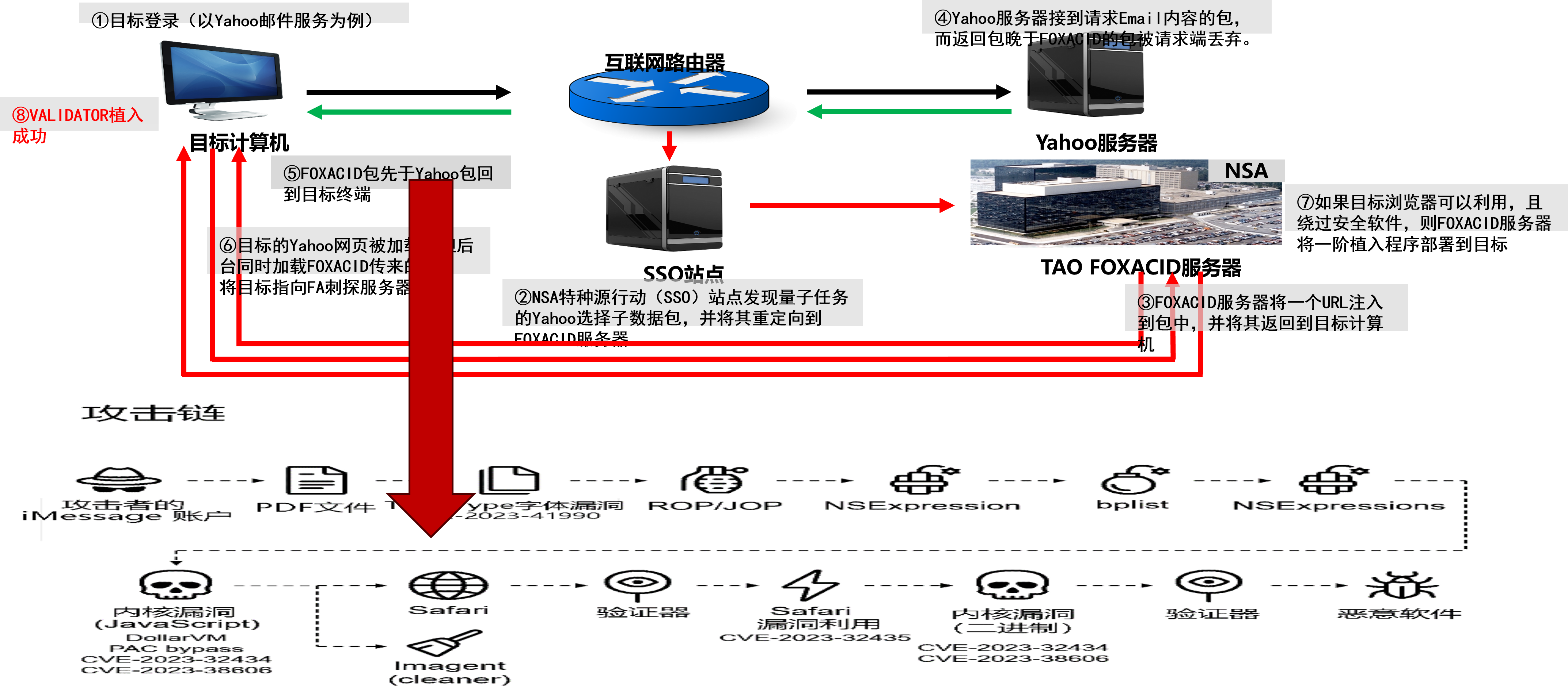 流量劫持注入(量子系统)、短信链接、iMessage等方式发送 |
