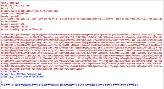 复现“三角测量”载荷与C2通信流量数据,复现数据(包括心跳包、信息获取等功能)内容如下所示:
