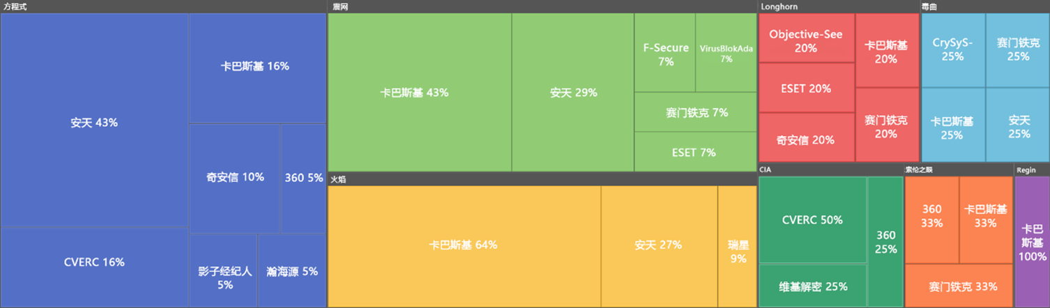 图6-1 已披露美方网空武器组成及各安全厂商披露占比