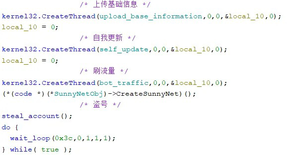 近期发现的恶意代码样本功能为盗取用户的小红书、抖音、哔哩哔哩平台账号信息,同时会自动回传用户设备的系统配置、网络环境等数据。此外,恶意代码会强制推广不明来源的浏览器扩展程序和应用软件,并针对抖音平台实施违规操作,包括自动刷取流量、批量点赞及取消点赞等。该加家族详细信息参见安天病毒百科[5]。