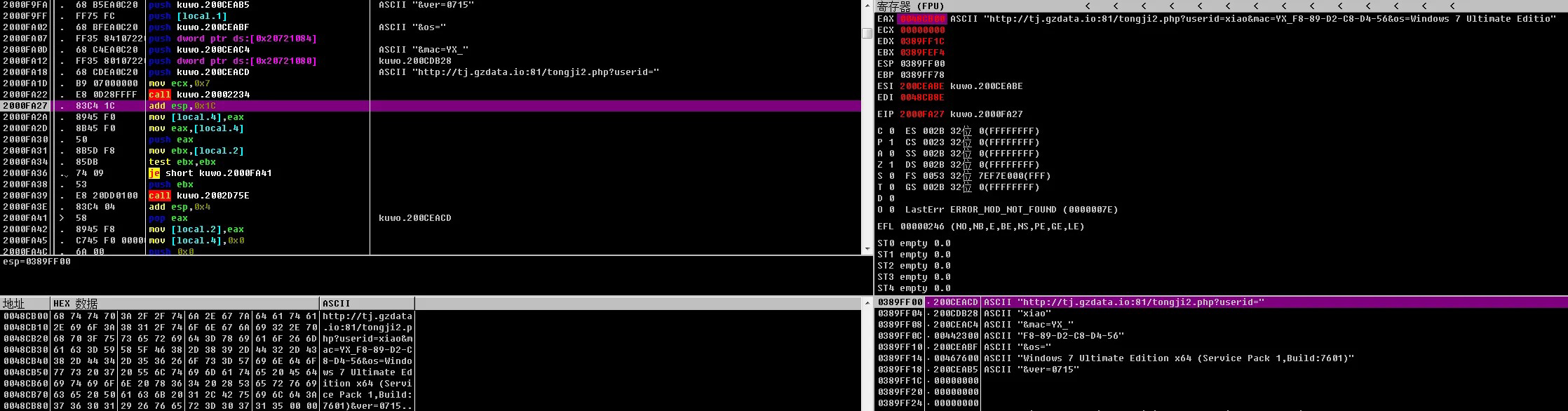 图3 回传用户ID值(userid)、MAC地址、操作系统版本信息
