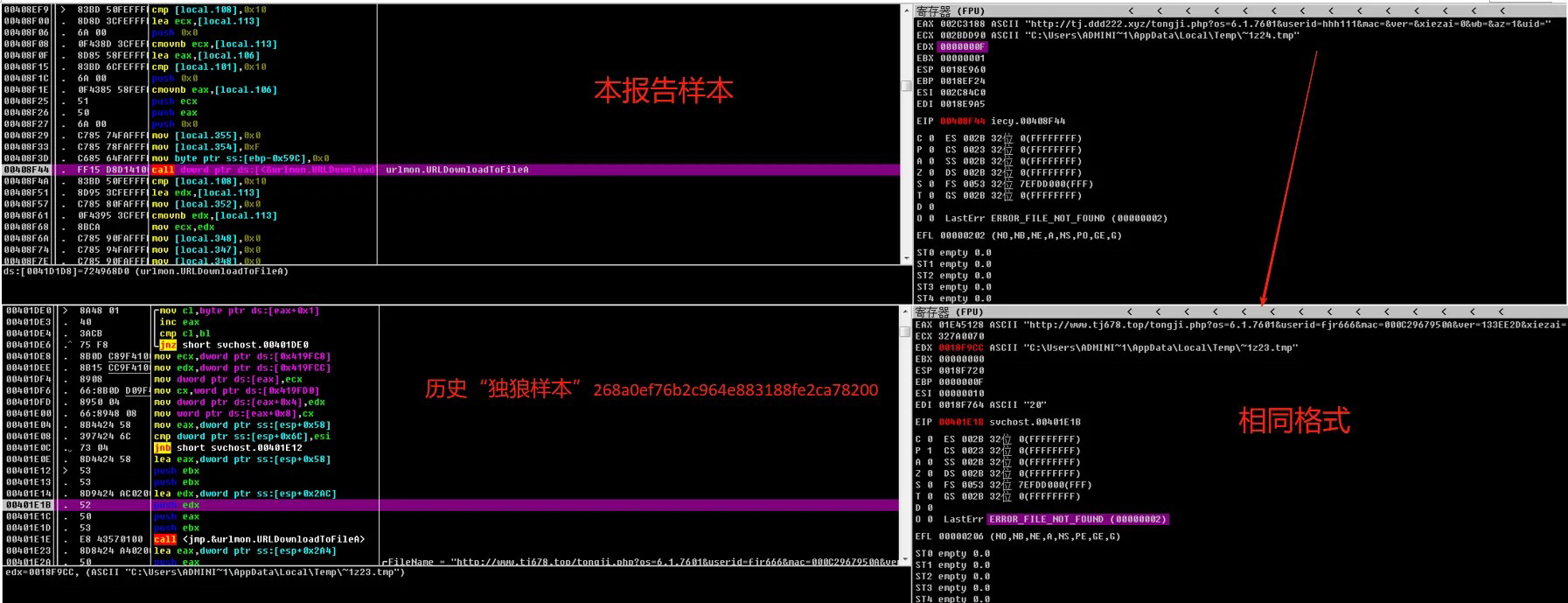 本次发现的样本具有与历史独狼团伙样本相同的特征,判断为独狼团伙的最新恶意行为。
