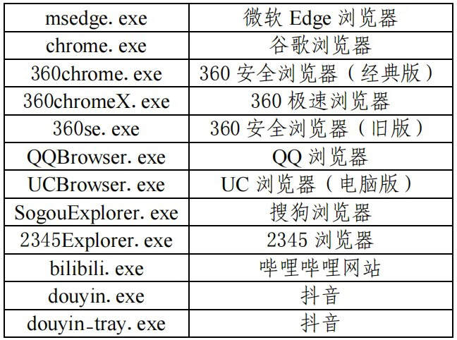 共涉及12款浏览器及程序,列表如下。