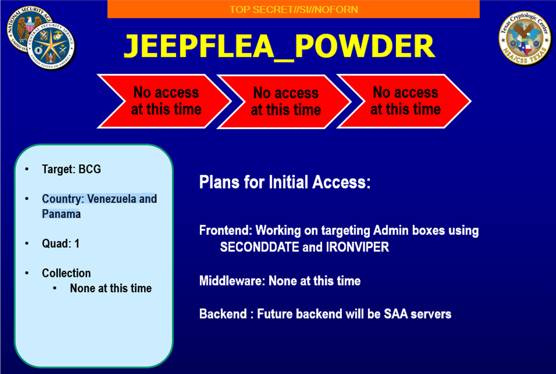 图3 “影子经纪人”泄露的美情报机构对委内瑞拉和巴拿马BCG的网空行动计划