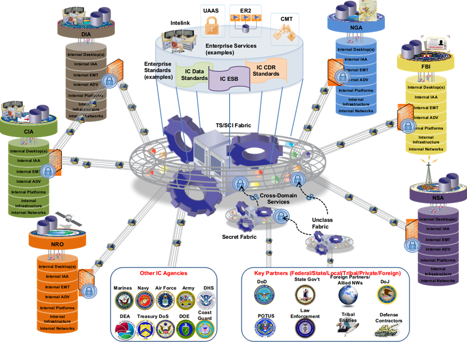 四是基于IC ITE等云平台的情报汇聚能力。美方通过IC ITE构建的大规模情报云(IC Cloud),系统整合了美情报界及国防部所有IT资源与服务,实现情报的融合与资源共享。IC ITE作为美情报体系的核心基础设施,将包括地理空间情报(GEOINT)、人力情报(HUMINT)、信号情报(SIGINT)、测量与特征情报(MASINT)和开源情报(OSINT)在内的全源情报,统一汇入基于大数据平台和人工智能的全方位情报整合体系,达成富集效应。