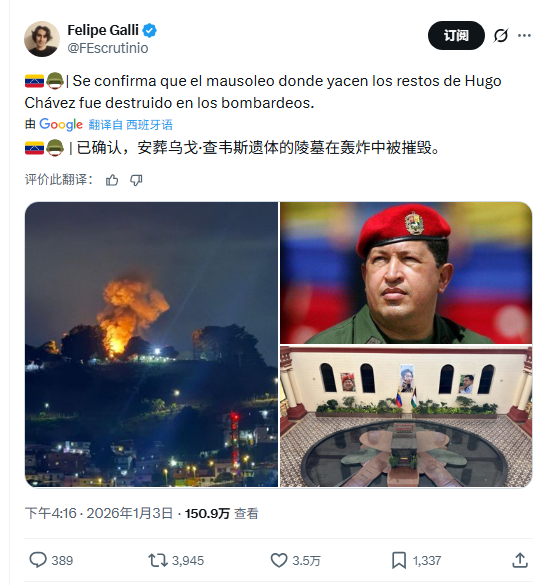 图10 美军轰炸委内瑞拉境内乌戈·查韦斯陵墓相关消息